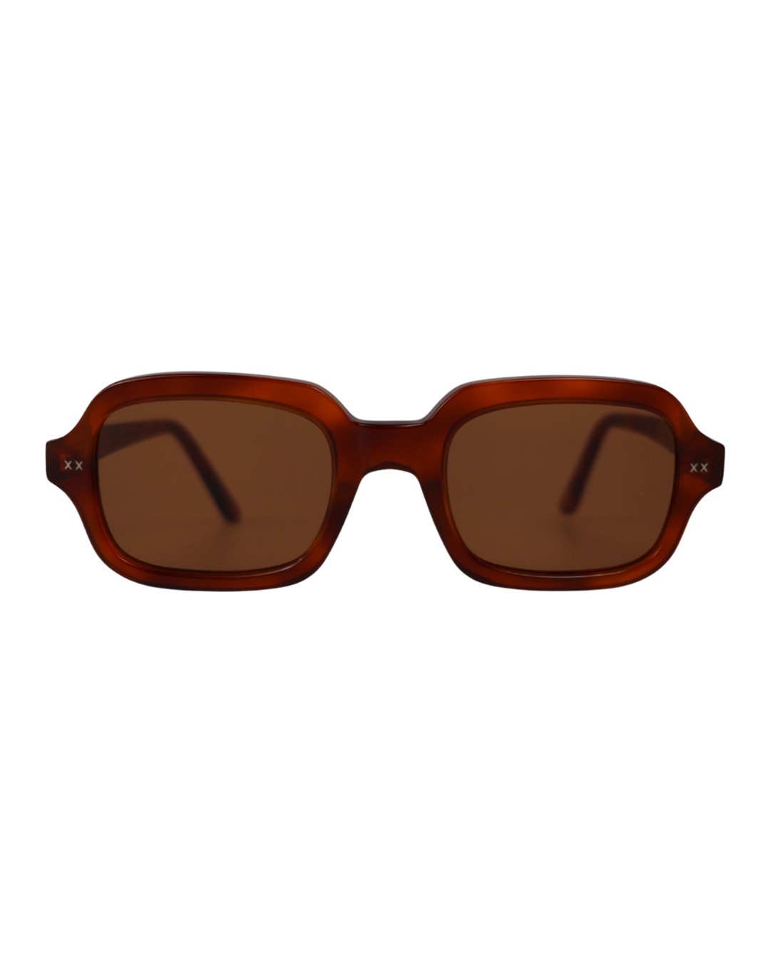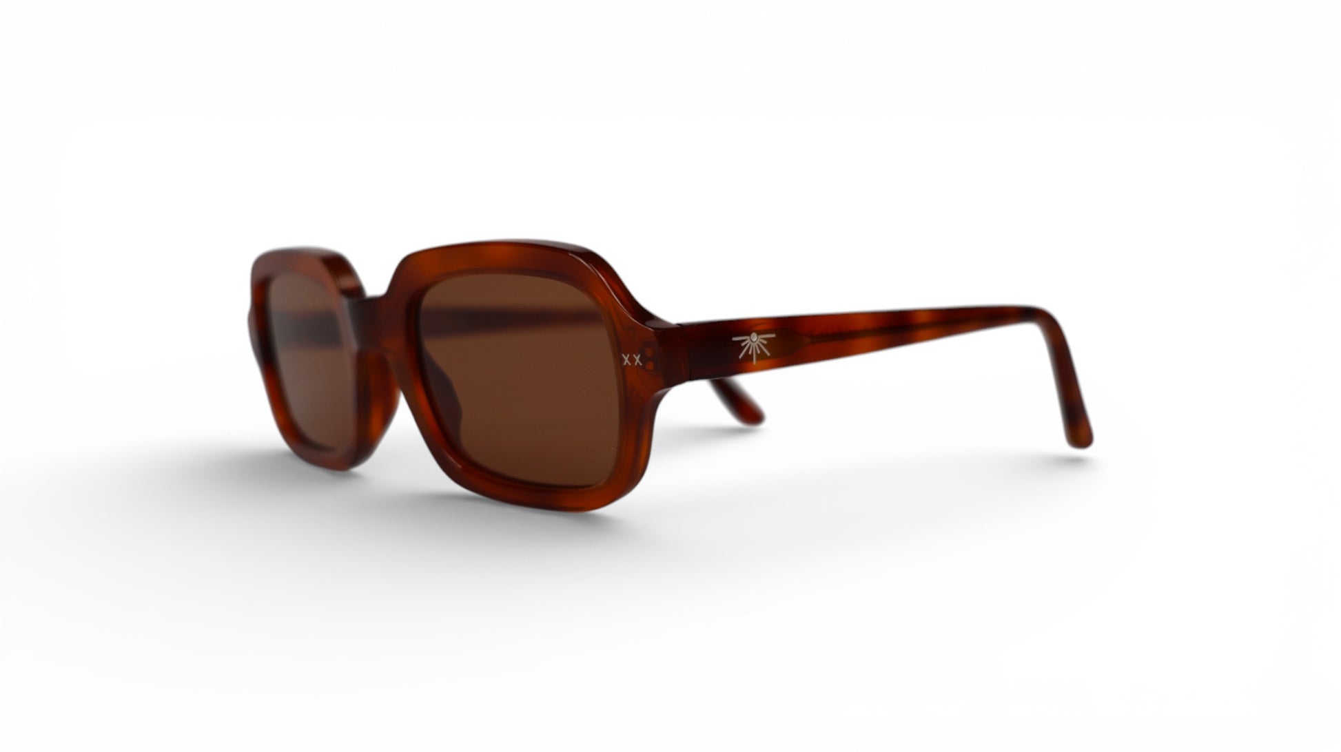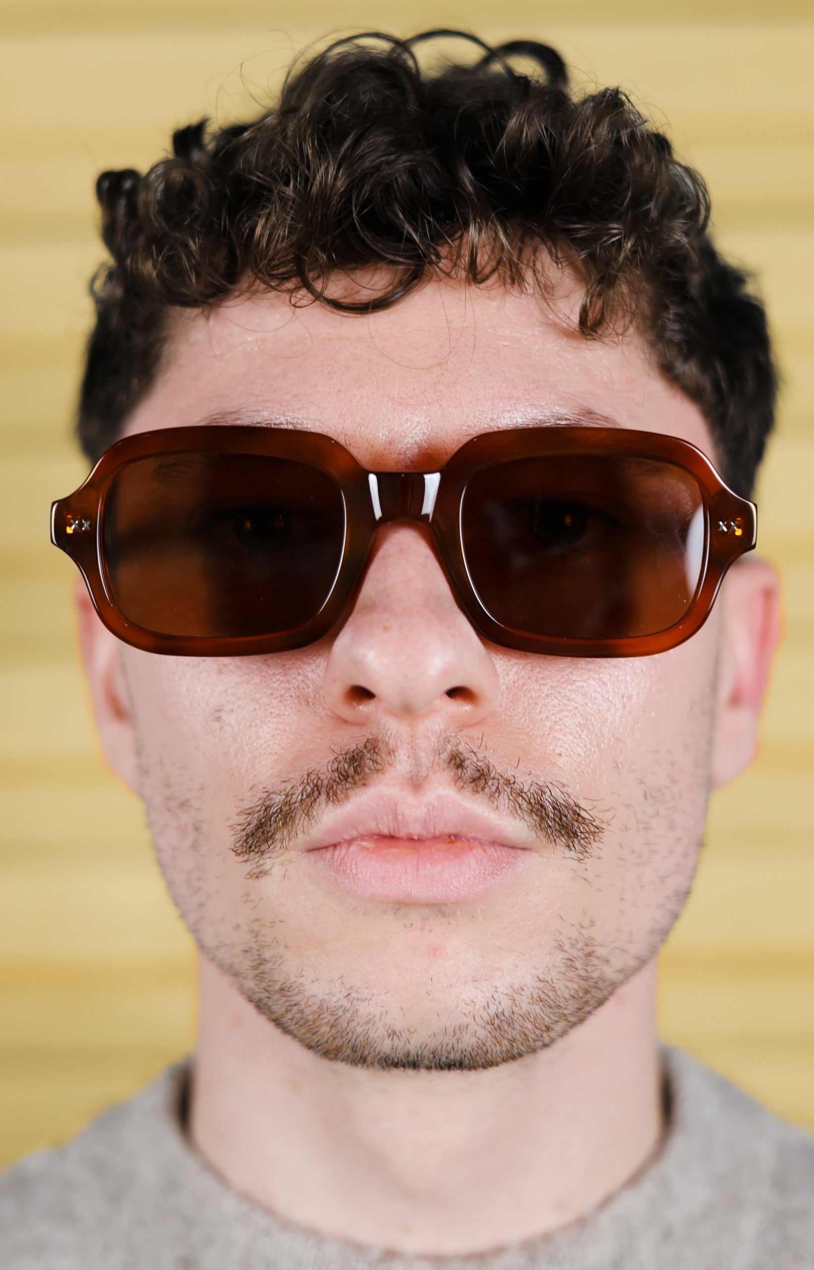 Enzo in Honey brings warmth to a strong, rectangular silhouette. Defined lines and a composed structure give it quiet authority, while the golden acetate adds depth and softness. Confident, considered, and made to move with you.